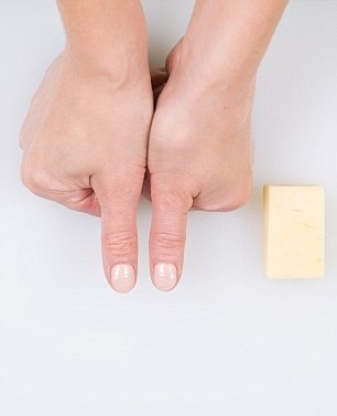 Tereyağı, başparmağınızın ucunu geçmemeli. Ve beslenme uzmanlarının bahsettiği 1 kibrit kutusu peynir, iki parmağınızın kalınlığı kadardır.