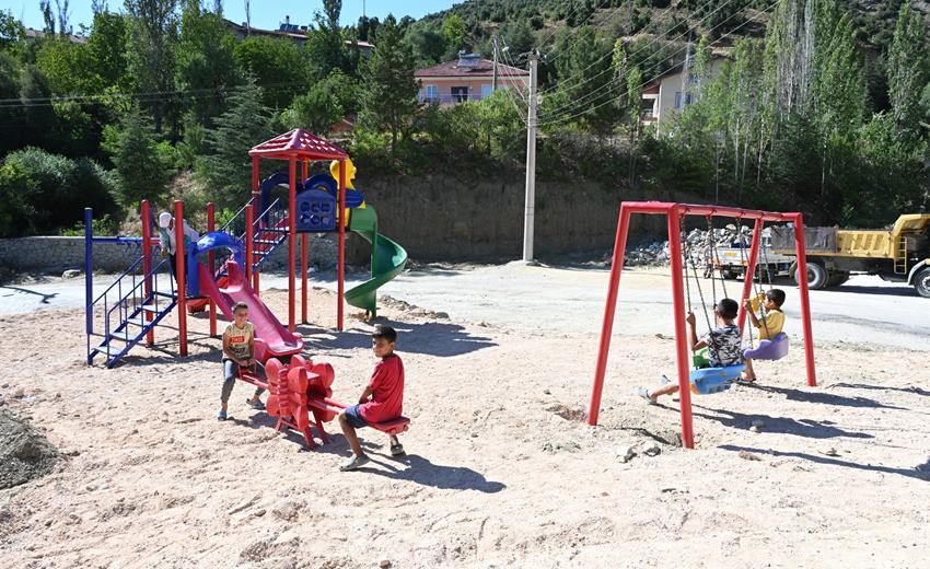 Çocuklar da köylerine oyun parkı kurulmasından dolayı Belediye Başkanı Şükrü Başdeğirmen’e teşekkür ettiler.