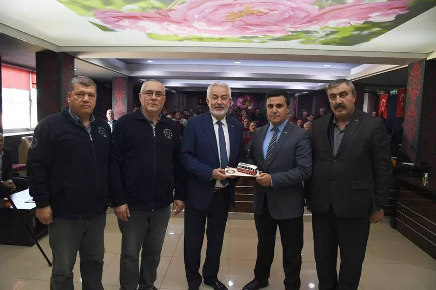 Buluşmanın sonunda Özel Halk Otobüsleri Kooperatifi Başkanı Faruk Daşdöner, Belediye Başkanı Şükrü Başdeğirmen’e halk otobüsleri maketi hediye etti.