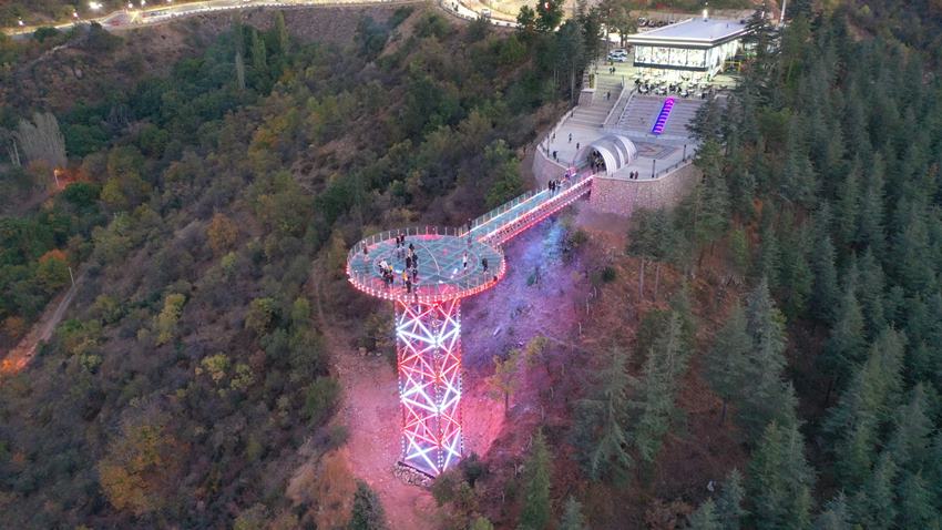 Şehrin simgesi haline gelen Kirazlıdere Cam Seyir Terası gecesiyle ayrı, gündüzüyle ayrı bir renk kattı.