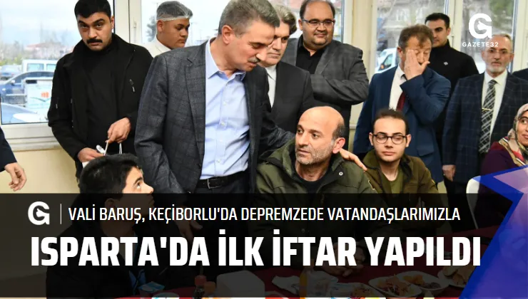 Vali Aydın Baruş ilk iftarını Keçiborlu ilçesinde konuk edilen depremzede vatandaşlarla birlikte yaptı. Vali Baruş iftar öncesi masaları dolaşarak konuklarla bir süre sohbet etti.