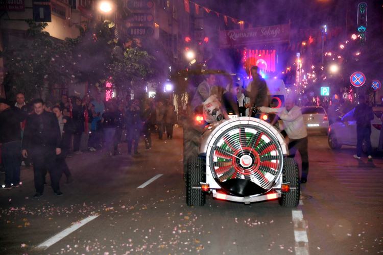 Ellerinde Türk Bayrakları ve meşalelerle belediye önünden Mehteran eşliğinde Ramazan ayı etkinliklerinin yapıldığı tarihi Damgacı Sokağa kadar yürüyen binlerce vatandaşın üzerine bir ton gül çiçeği ve 1,5 ton gül suyu serpildi. Fener Alayı sonrasında Damgacı Sokak’ta Başkal ve Canan Bayram alanı dolduran binlerce kişiye unutulmaz bir gece yaşattı.