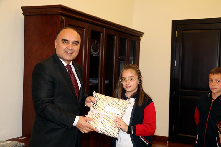 Konuklarının bayramını kutlayan Vali Şehmus Günaydın minik Vali Hız’a duyarlılığından ötürü teşekkür etti. Vali Şehmus Günaydın ve temsili Vali Hız bir süre sohbet etti.