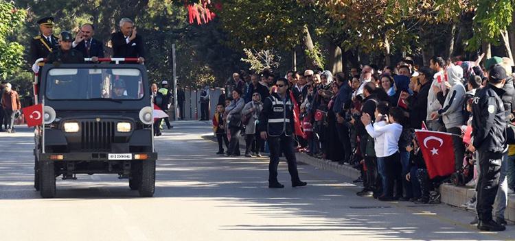 Hükümet Caddesi’nde askeri araca binen Vali Şehmus Günaydın, Isparta Garnizon Komutanı Piyade Albay Bilgin Çetinbağ ve Belediye Başkanı Yusuf Ziya Günaydın’la halkın bayramını kutladı.