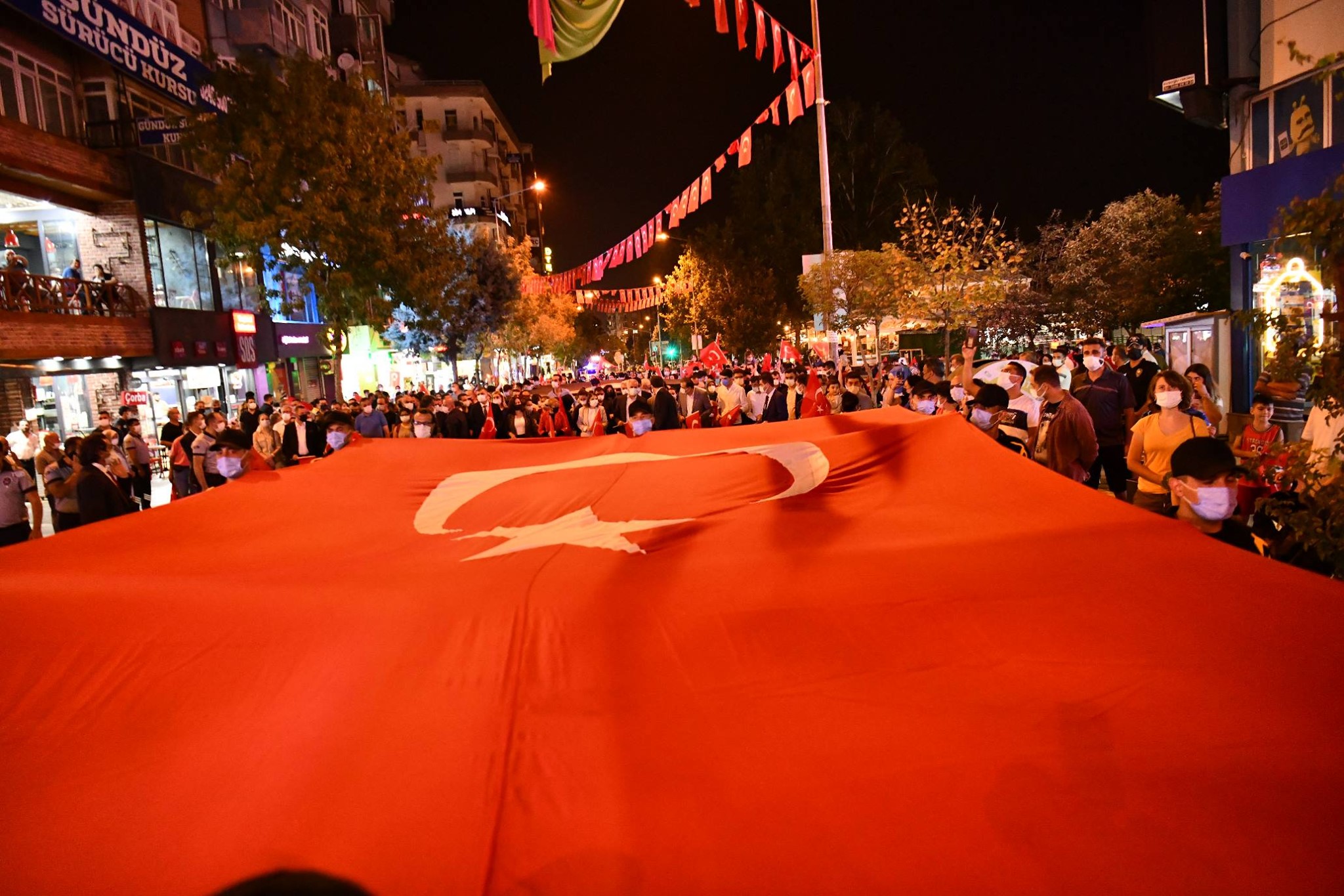 Fener Alayı komandolarının Türk bayrağını ve Gazi Mustafa Kemal Atatürk’ün posterini taşımaları ile sona erdi.