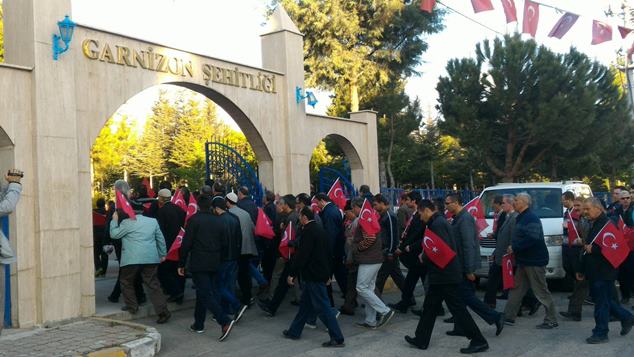 Türk bayrakları ile yola devam eden katılımcılar tekbir sesleri ile sabahın bereketine bereket kattılar. Şehitlik programında ise Kuran-ı Kerim tilavetinden sonra eller semaya açıldı, dualar edildi.