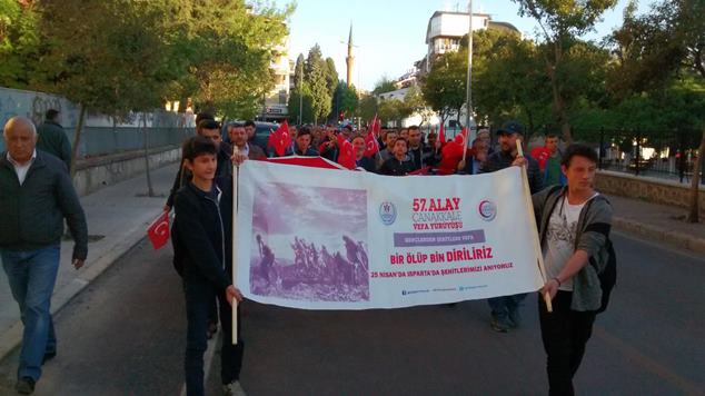 Gençlik ve Spor Bakanlığı tarafından 81 ilde eş zamanlı olarak düzenlenen 57. Alay Vefa Yürüyüşü Isparta’da da gerçekleşti.