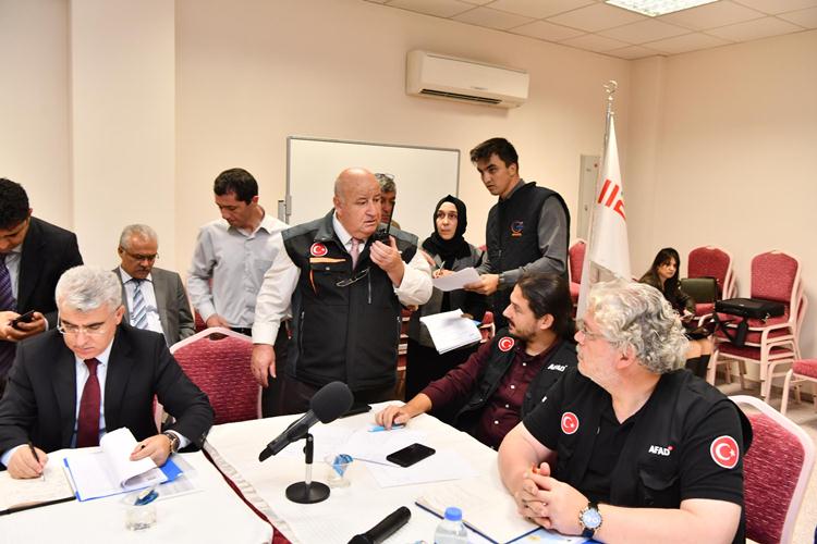 Senaryo gereği yapılan deprem çağrısının ardından Vali Vekili Ömer Faruk Ateş başkanlığında Türkiye Afet Müdahale Planı (TAMP) kapsamında ilimizde 26 ana hizmet grubu altında görev verilen tüm kamu kurum ve kuruluşları ile özel sektör ve STK temsilcileri 15 dakika gibi kısa bir sürede kriz merkezini oluşturmak için İl Afet ve Acil Durum Müdürlüğü’nde toplandı.