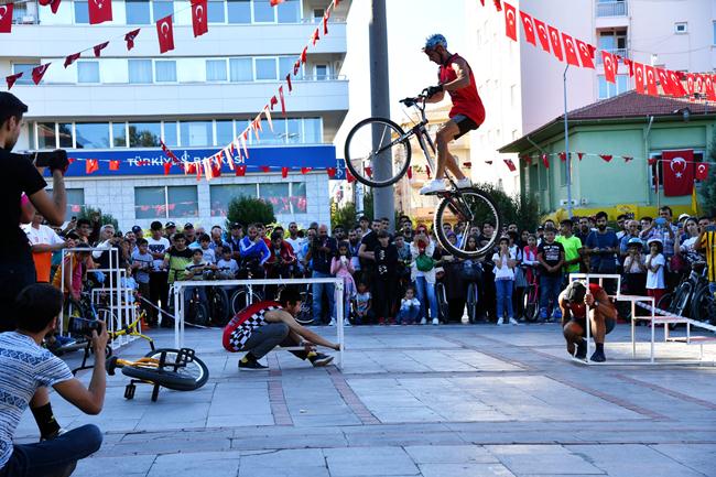 Konuşmaların ardından meydanda bisiklet akrobasi gösterileri yer aldı.