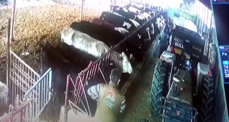 Isparta’nın Gönen ilçesine bağlı Gölbaşı köyündeki bir çiftlikte, şap aşısı yapmak için gelen görevlileri gören büyükbaş hayvanlar, strese girip ahırın demirlerini söktü. Hayvanların şap aşısına karşı eylemi ahırın güvenlik kamerasına yansıdı.