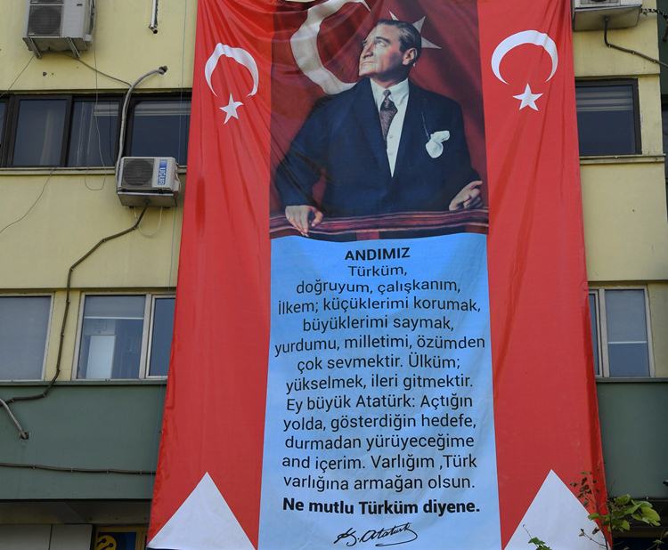 Danıştay 8. Dairesi ilköğretim okullarında okunan “Öğrenci Andı”nın kaldırılmasına yönelik hükmü iptal etti. Danıştay kararı tartışılırken Isparta Belediye Başkanı Yüksek Mimar Yusuf Ziya Günaydın’dan dikkat çeken bir hamle geldi. Günaydın’ın talimatı ile belediye hizmet binasına üzerinde Gazi Mustafa Kemal Atatürk’ün fotoğrafı ve Andımızın yer aldığı 54 metrekarelik pankart asıldı.