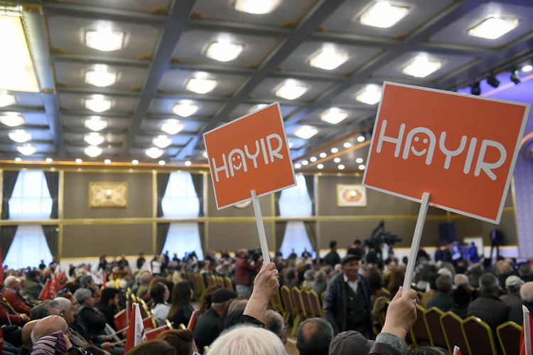 Meclisi fesih yetkisinin 1924’te anayasa görüşülürken Atatürk’e verilmek istendiğini ancak kabul edilmediğini anlatan Kılıçdaroğlu, 1924’te verilmeyen yetkinin 2017’de verilmek istendiğini savundu. Kılıçdaroğlu, “80 milyonun aklı mı bir kişinin aklı mı önemlidir? Onun için diyorum ki sandığa gidip ’hayır’ oyunu kullanmak çok önemli. Geleceğimiz için çok önemli, Türkiye için çok önemli.” diye konuştu.