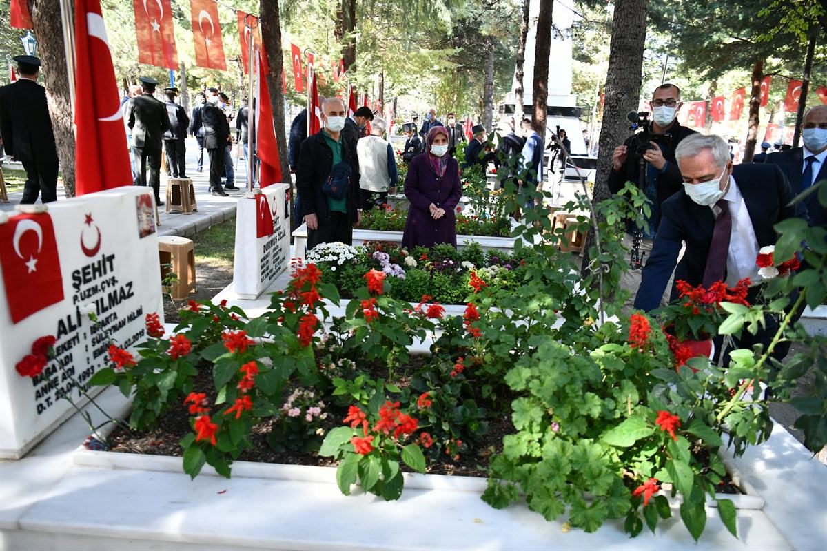 Vali Seymenoğlu aziz şehitlerimizin kabirleri başındaki yakınlarıyla da bir süre sohbet ederek taziye dileklerini yineledi.