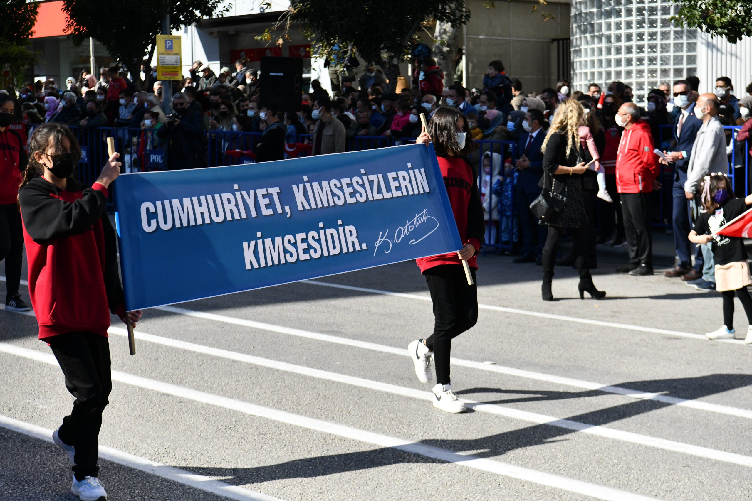 Öğrencilerin şiirler okumasının ve halk oyunu gösterisinin ardından geçişi yapıldı. Vali Seymenoğlu ve protokol üyeleri geçiş yapan askeri birlikleri, gazileri ve öğrencileri coşkuyla selamladıktan sonra tören sona erdi.