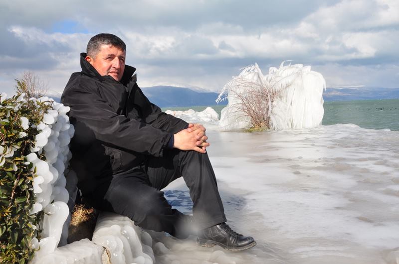 Eğirdir’de Poyraz esmesyle birlikte dalgaların kenara sıçrattığı sular soğuk havanın da etksiyle Eğirdir’de harika manzaralar ortaya çıkardı.