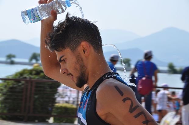 Uzun parkurları tamamlayan triatletler, final çizgisinde sıcaklık nedeniyle baygınlık geçirirlerken, buzlu şok havuzlarında kendilere gelme imkanı buldular.