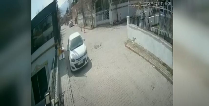 Anadolu Mahallesi’ndeki bir otelin önüne park edilen otomobil, sürücünün el frenini çekmeyi unutmasıyla hareketlendi. Sürücüsüz bir şekilde ilerleyen otomobil, 200 metre ilerideki bir eve çarparak durabildi. O anlar ise otelin güvenlik kameralarına saniye saniye yansıdı.