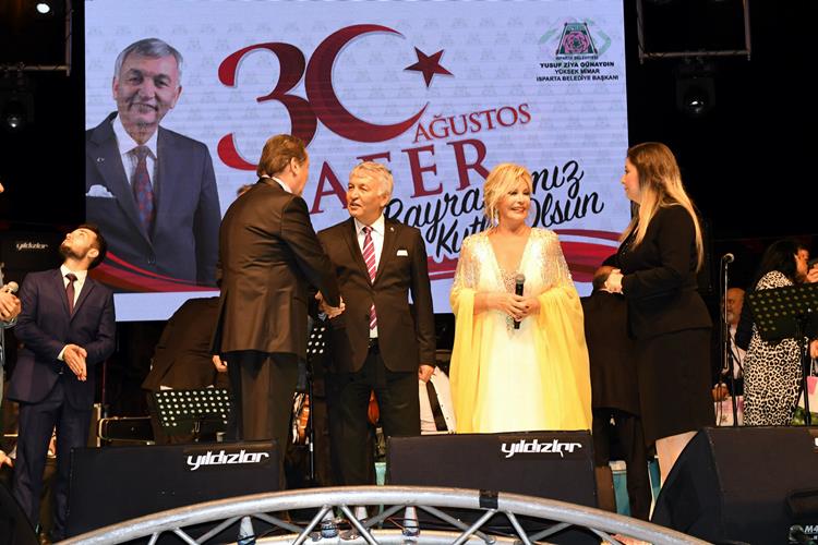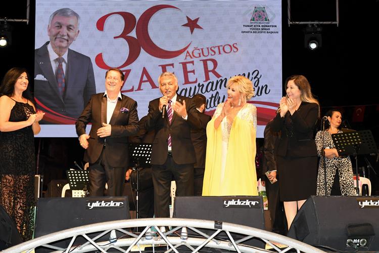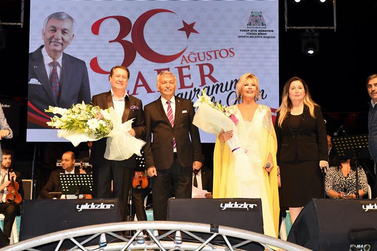 Ispartalılar, Isparta Belediyesi’nin düzenlediği 30 Ağustos Zafer Konserinde Emel Sayın ve Ahmet Özhan ile buluştu. Kaymakkapı Meydanında düzenlenen konserde Emel Sayın ve Ahmet Özhan düet yaparken, seyircilerle Onuncu Yıl Marşı ile final yaptılar. Isparta Belediye Başkanı Yüksek Mimar Yusuf Ziya Günaydın, 30 Ağustos’un Türk Milletinin kurtuluşu olduğuna vurgu yaparken, vatanın nasıl kazanıldığını, bağımsızlığın nasıl elde edildiğini bu milletin bilmesi ve sahip çıkması gerektiğini söyledi.