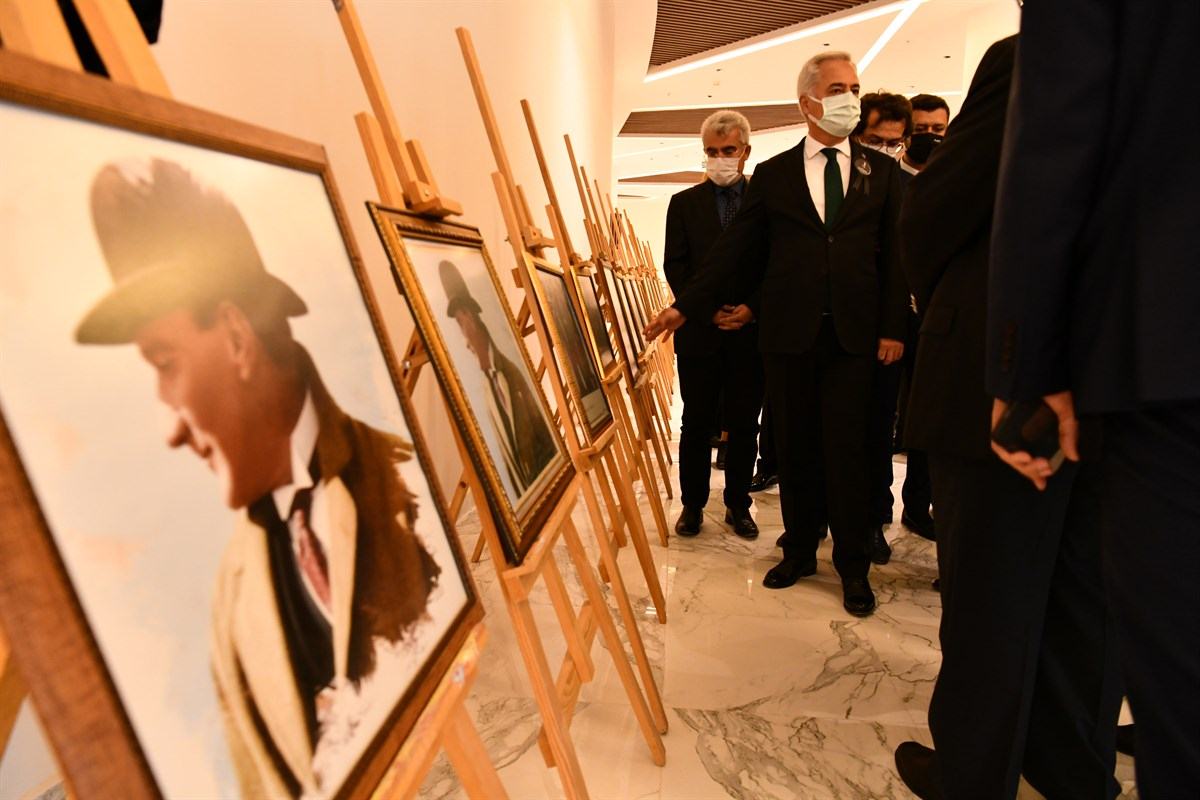 Programın sonunda Vali Seymenoğlu ve protokol üyeleri Atatürk’ün yaşamından kesitlerin sunulduğu fotoğraf ve resim gezdi.