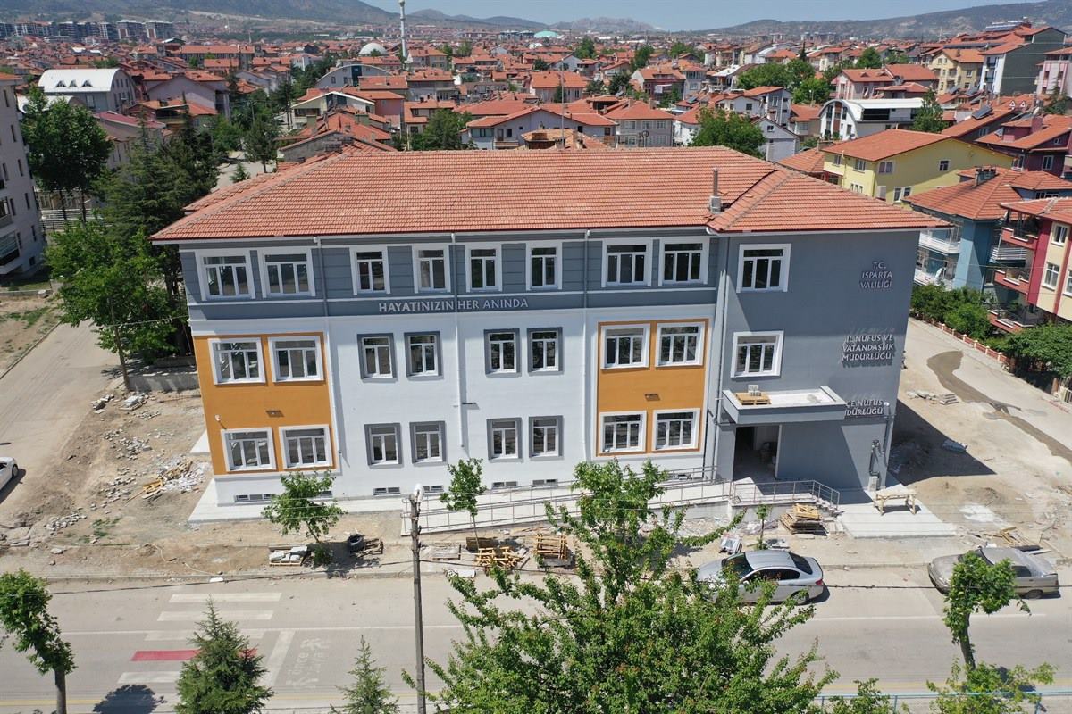 İçişleri Bakanlığınca yürütülen ve nüfus müdürlüklerinin vatandaşlarımıza daha kaliteli hizmet sunabilmesi adına “Hayatınızın Her Anında” sloganıyla yeni konsept çalışmalarına tüm Türkiye’de olduğu gibi Isparta’da da devam ediliyor. Isparta İl Nüfus ve Vatandaşlık Müdürlüğü’nün nüfusla ilgili tüm işlemleri tek çatı altında birleştirecek modern hizmet binası inşaatı tamamlanmak üzere.