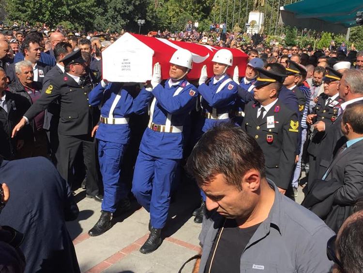 Batman’ın Gercüş ilçesinde PKK’lı teröristlerin önceden yola tuzakladıkları el yapımı patlayıcıyı infilak ettirmesi sonucu meydana gelen patlamada şehit olan 24 yaşındaki Jandarma Uzman Çavuş Ali Hekim, memleketi Isparta’da son yolculuğuna uğurlandı.