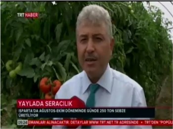 Programda, domates serası Sahibi Hüsnü Erdoğan; “Şuanda domates olarak 40 dekarlık bir alanda üretim yapıyoruz. Tabi sezon sezon değişir, bu sene sezonun güzel olması nedeniyle şuanda gelirimiz gayet iyi. Allah bereket versin. Kilogramı 1.90 lira. Nisan 15 gibi dikimlere başladık. Hasada ağustos itibari ile başladık. Sezon ne kadar uzarsa o kadar iyi oluyor kasım ortalarına kadar falan tahmin ediyoruz” dedi.