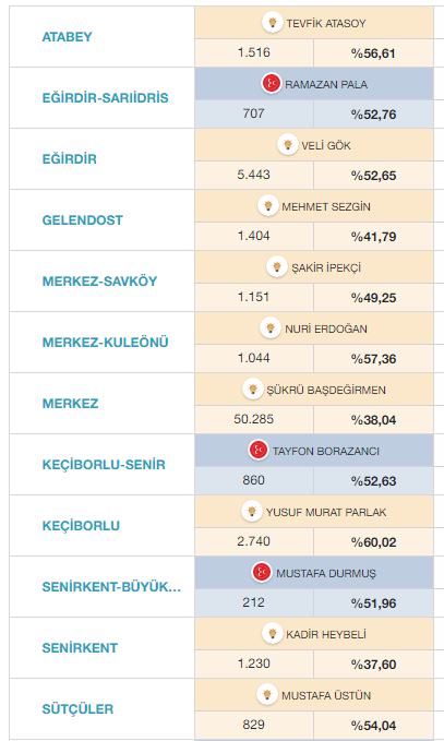 ISPARTA YEREL SEÇİM SONUÇLARI