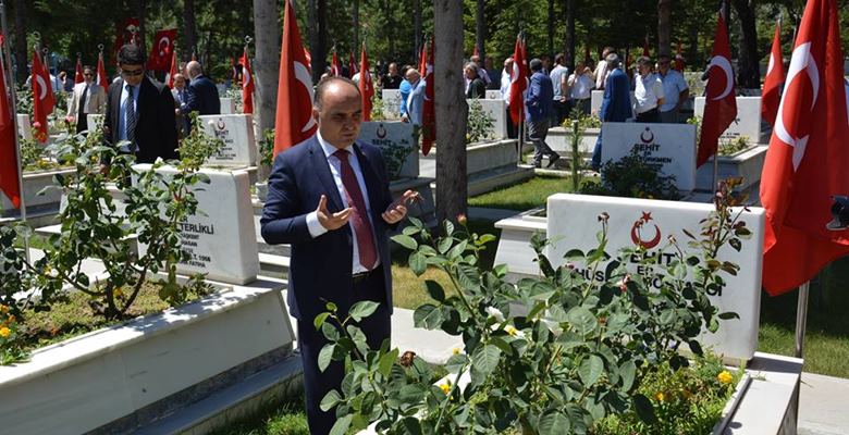 Saygı duruşunda bulunulması ve İstiklal Marşı’nın okunmasının ardından Kur’an-ı Kerim okunan törende Vali Günaydın ve beraberindekiler şehit kabirlerine karanfil bıraktı.