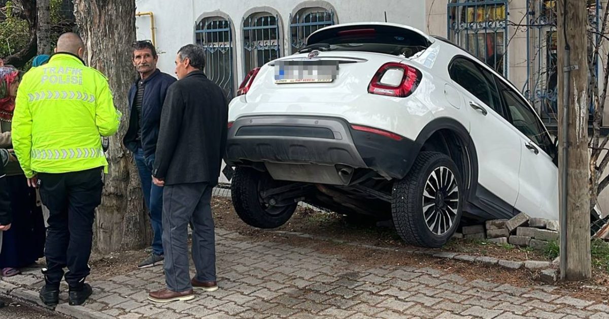 Kaza, Fatih Mahallesi’nde meydana geldi. Edinilen bilgilere göre, sürücüsünün direksiyon hakimiyetini kaybettiği araç kontrolden çıkarak kaldırımı aştı ve bir evin bahçesine girdi. Bahçe duvarını yıkan araç, bulunduğu noktada asılı şekilde durabildi.
