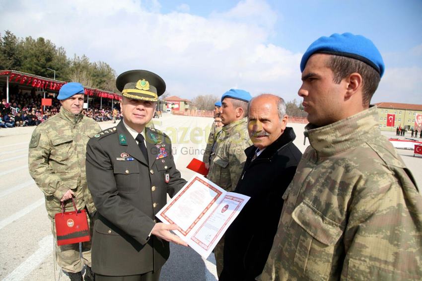 Komutanlıkta düzenlenen törene, Terörizmle Mücadele Eğitim ve Tatbikat Merkez Komutanı Albay Cüneyt Arıkan ile sözleşmeli erlerin aileleri katıldı.