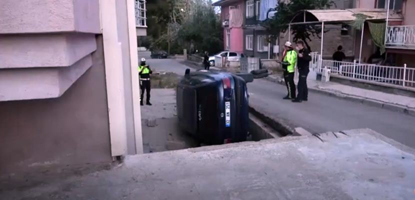Keçeci Mahallesi 2305. Sokakta seyir halinde araç, sürücüsünün direksiyon hakimiyetini kaybetmesi sonucu bina boşluğuna yan yattı. Meydana gelen kazada şans eseri ölen ya da yaralanan olmadı.