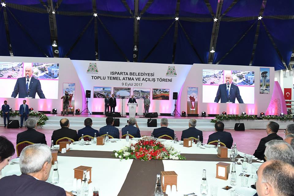 MHP Genel Başkanı Devlet Bahçeli, Isparta Belediye Meclisi kararıyla kendi adının verildiği, toplam 15 milyon TL’ye mal olan Gökkubbe Uluslararası Fuar ve Kongre Merkezi’nin de aralarında bulunduğu 9 tesisin açılışını gerçekleştirdi.