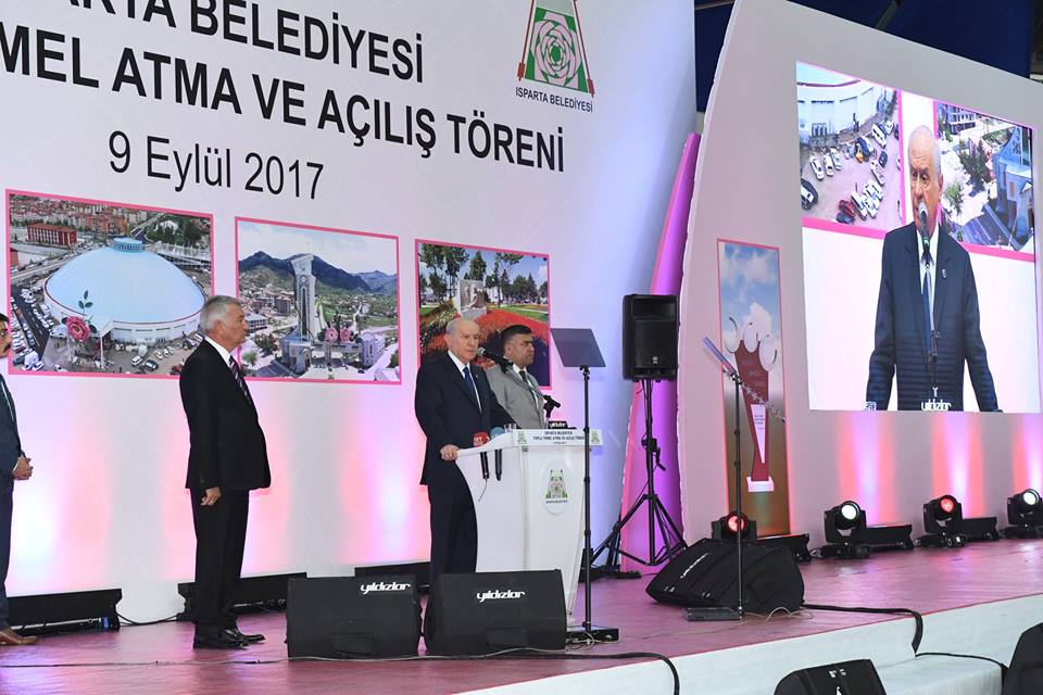 Devlet Bahçeli, gül diyarı Isparta’da olmaktan büyük mutluluk duyduğunu kaydeden Bahçeli, “9 eserin 9 farklı yerde ve 9 Eylül’de açılması ayrı bir mana bulmuştur. Isparta Belediyesi 9 muhteşem eserle Isparta’dan destan yazmıştır” şeklinde konuştu.