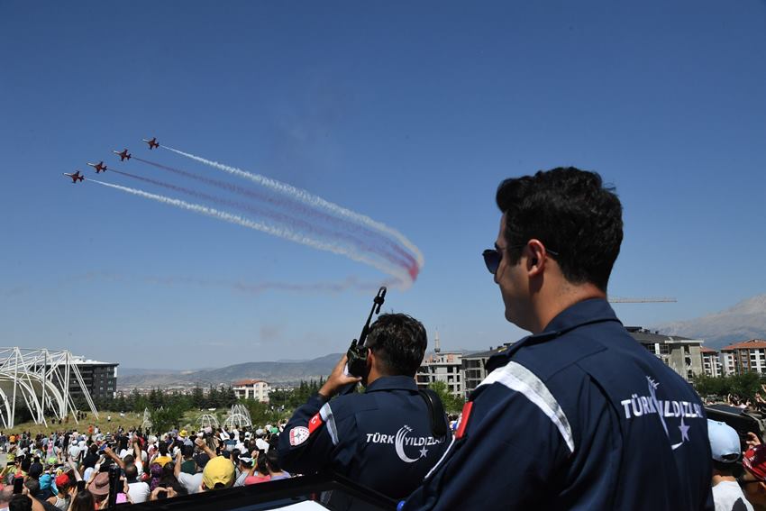 Türk Hava Kuvvetleri’nin akrobasi ekibi, milli gururumuz Türk Yıldızları, Isparta semalarında 6 uçakla 30 dakika süren bir gösteri yaptı. Isparta Belediyesi Lavanta Günleri Gençlik Festivali kapsamında gerçekleştirilen gösteriyi Vali Aydın Baruş, Garnizon Komutan Vekili Albay Hüseyin Mustafa Aksu, Belediye Başkanı Şükrü Başdeğirmen, İl Genel Meclisi Başkanı ve AK Parti İl Başkanı Serkan Keskin ile binlerce vatandaş takip etti.