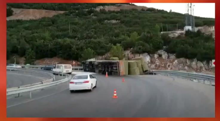 Sık sık trafik kazalarının meydana geldiği Eğirdir Miskinler rampasında bir trafik kazası daha meydana geldi. Virajı alamayan saman yüklü tır devrildi.