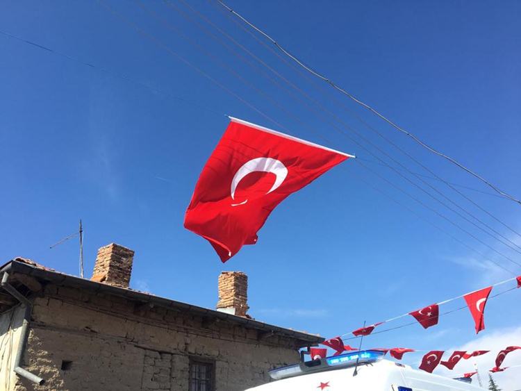 ŞEHİDİN EVİ BAYRAKLARLA DONATILDI