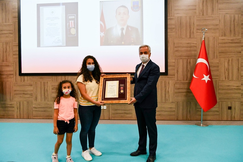 Konuşmasının ardından Vali Ömer Seymenoğlu: Cumhurbaşkanımız Recep Tayyip Erdoğan adına; Şehit Burhan Açıkkol adına babası Durmuş Açıkkol’a Şehit Şükrü Çakar adına kızı Emine Nehir Çakar’a, Şehit Ali Hekim adına babası Hasan Hekim’e ve kahraman gazilerimiz; Abdurrahman Aydoğdu, Eyüp Çetin, Süleyman Altuntay, Hakkı Tuncel, Seyfettin Kayacan, Hakan Aksoy ve Umut Şimşek’e Devlet Övünç Madalyası ve Beratlarını takdim etti.