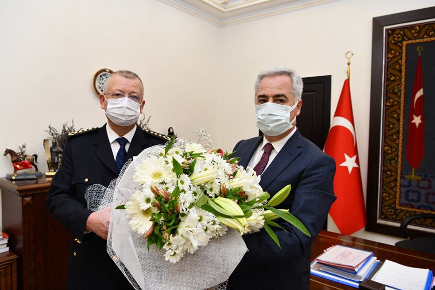 Türk Polis Teşkilatı’nın 176. Kuruluş yıldönümünü dolaysısıyla Vali Ömer Seymenoğlu da İl Emniyet Müdürü Metin Akay ve beraberindeki emniyet mensuplarını kabul ederek misafirleri nezdinde Polis Teşkilatı’nın gününü kutladı, tüm mensuplara sevgi ve selamlarını iletti.
