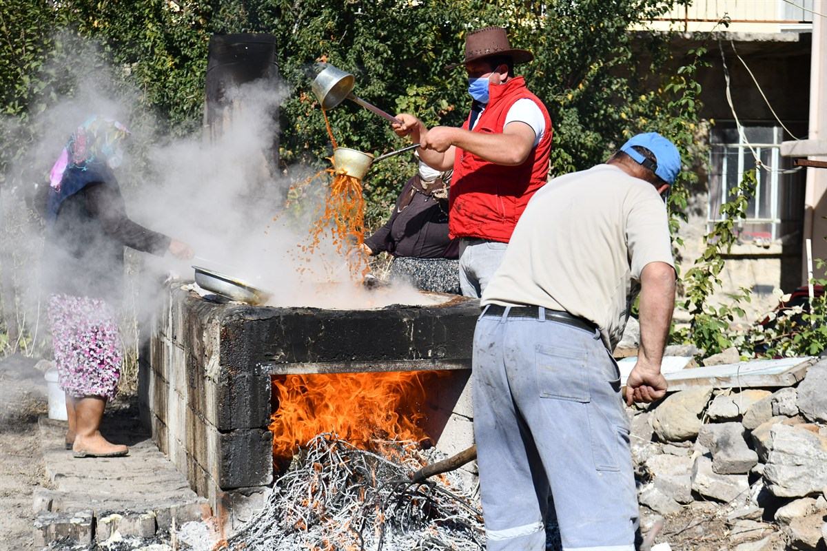 Pekmez yapımı meşakkatli bir süreç. Pekmez yapan ailenin tüm bireyleri gencinden yaşlısına bu aşamalarda görev almakta. Kimi ateşin belli bir seviyede yanması için çaba sarf derken kimi ise saatlerce pekmezi karıştırıyor. Üzüm suyunun pekmeze dönüşüp dönüşmediğinin kararını veren ise genelde evin en yaşlısı oluyor. Yakaörenli ailenin evinde bu kararı Fevziye Uçman verdi. Bir tabak içinde kendisine verilen pekmezi sağa sola eğerek kontrol eden Fevziye teyze yılların tecrübesiyle pekmezin olup olmadığını bir bakışta anlayarak pekmezin 15 dakika daha kaynaması gerektiğini söyledi. Fevziye teyzenin tarifiyle kaynatılan pekmez en son süzülerek soğumaya bırakıldı.