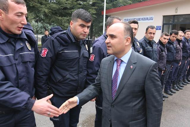 Isparta Vali Şehmus Günaydın beraberinde İl Emniyet Müdürü Halil Turan Erol ile Çevik Kuvvet Şube Müdürlüğünü ziyaret ederek, polislerle bir araya geldi.