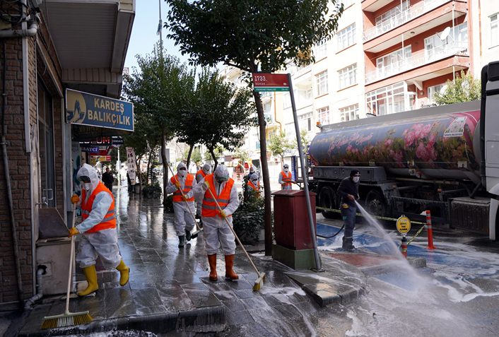 Bunun yanı sıra yine ekiplerce cadde ve sokaklarda bulunan yağmur suyu ızgaraları da dezenfekte edilirken, çalışmalar pazaryerleri, sağlık alanları, otobüs durakları, otogar, tuvaletler, çeşmeler, kamu kurum ve kuruluşları ile pasajlarda da aralıksız sürüyor.